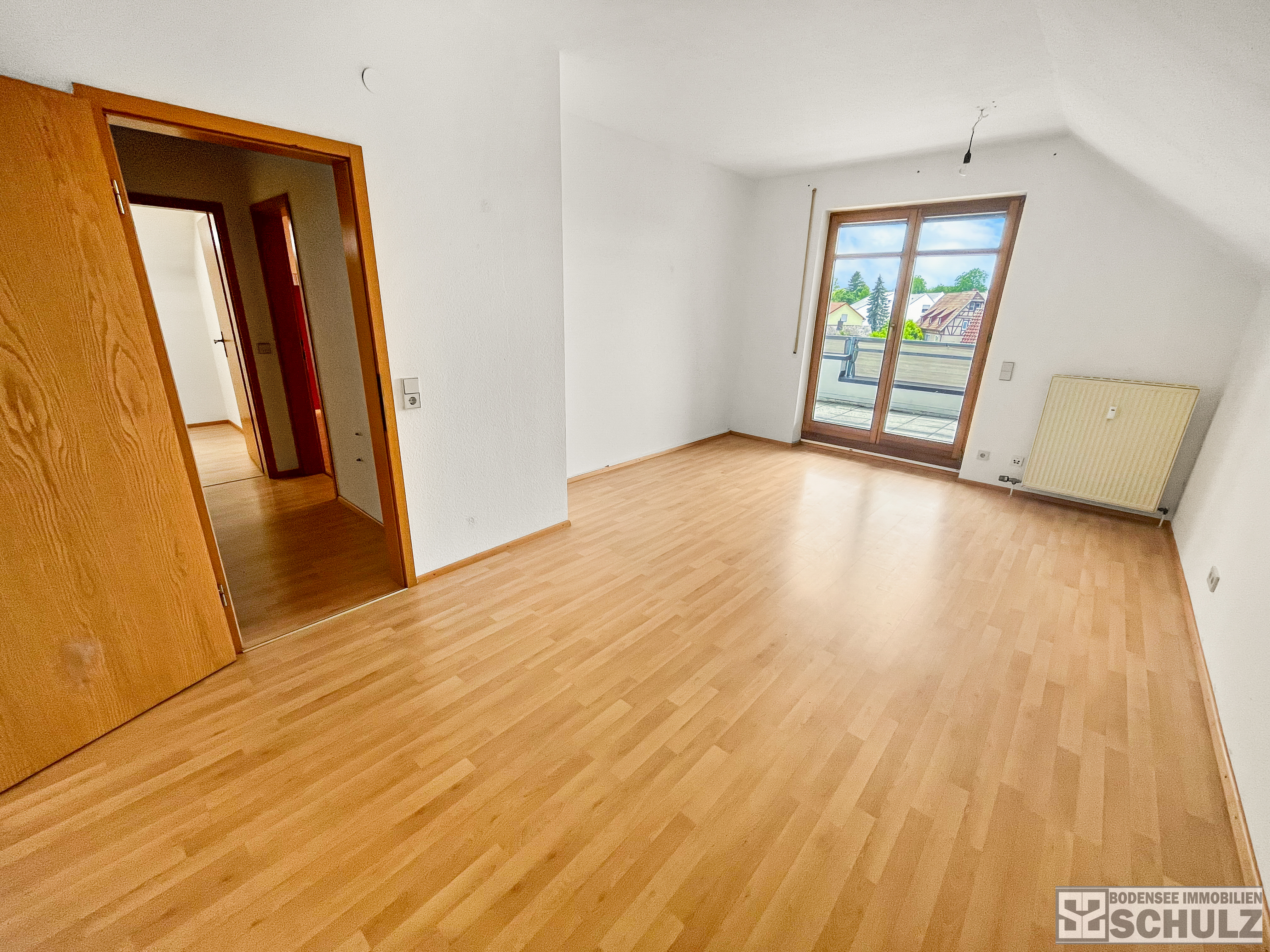 Zwei großzügige Schlafzimmer und großzügiger überdachter Balkon auf der Südseite, Bad mit Dusche und Wanne, große Küche mit kleiner Küchenzeile, Abstellraum, Böden Laminat.