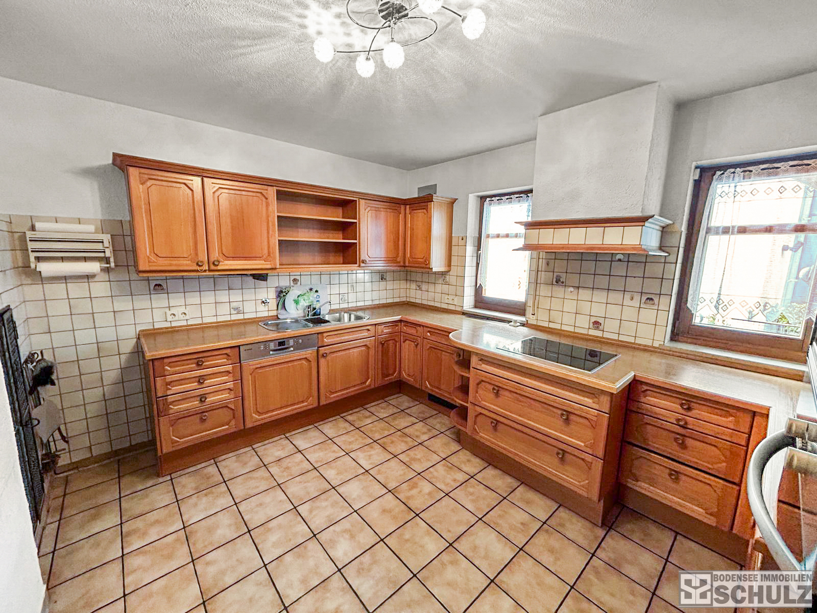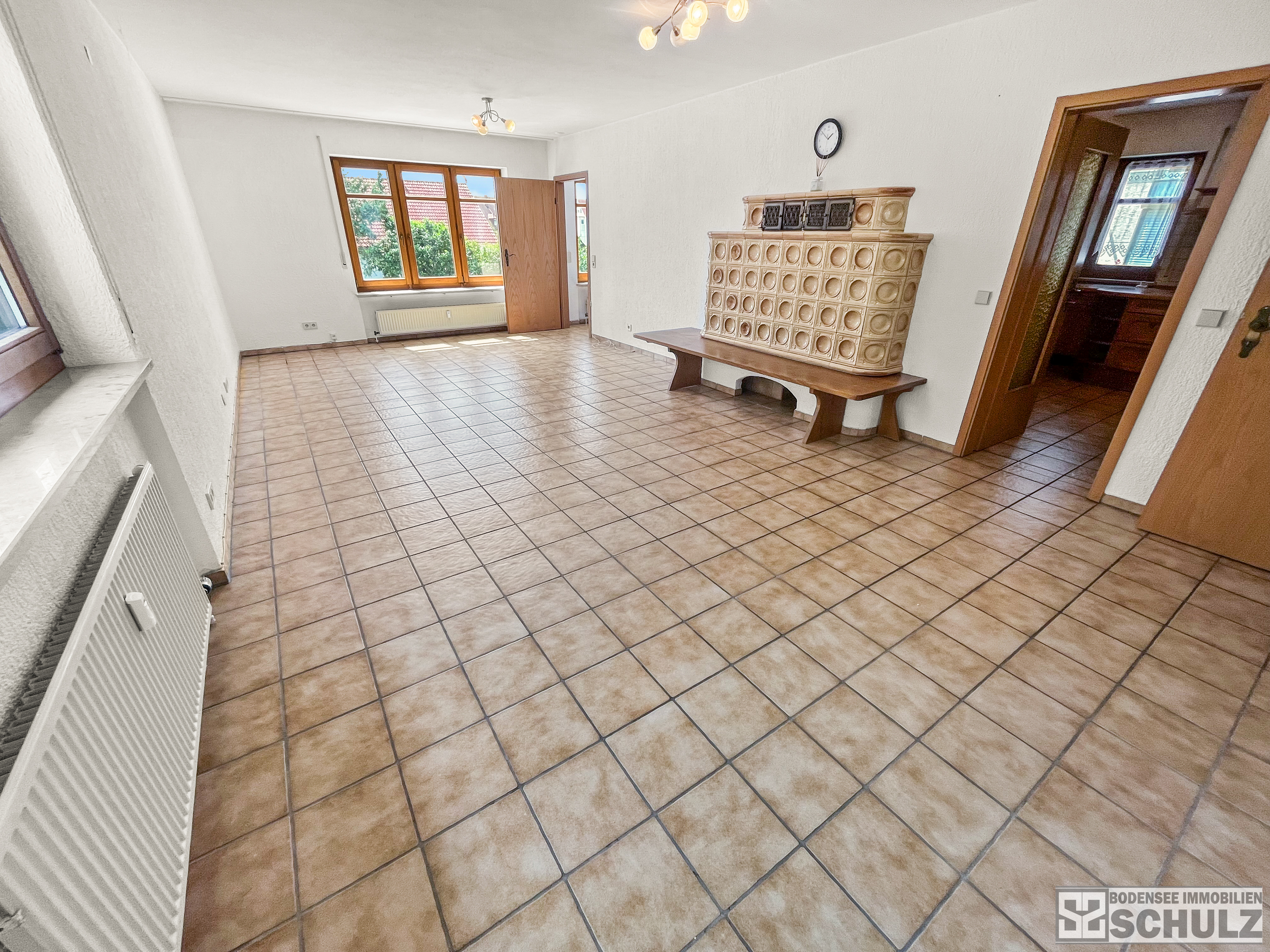 Großzügige Küche und ca. 55m² großes Wohnzimmer (ursprünglich), von dem eine Fläche von ca. 16m² abgetrennt wurde, um ein weiteres Zimmer entstehen zu lassen. Dieses wurde zuletzt als Schlafzimmer genutzt. Rückbau aber problemlos möglich. Darüber hinaus befindet sich im EG ein Bad mit Wanne und Dusche, ein separates WC und ein Abstellraum sowie der Wintergarten auf der Ostseite. Alle Räume sind gefliest.
